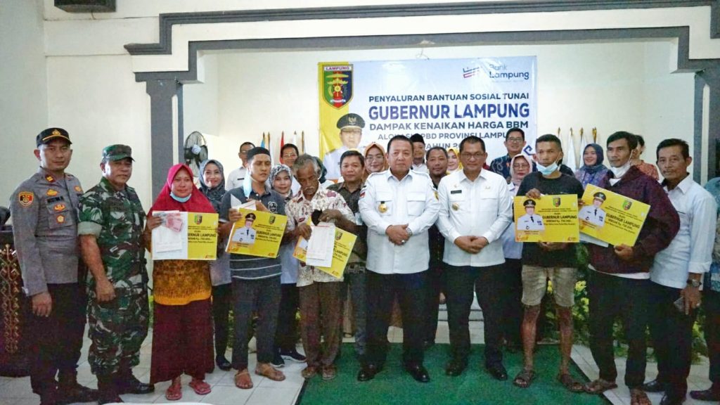 Menurut Gubernur, sebagai bentuk reaksi cepat dalam mengendalikan inflasi dan mitigasi dampak inflasi, Pemerintah Provinsi Provinsi Lampung, hari ini melaunching Bantuan Sosial Tunai Penanganan Dampak Inflasi Daerah Provinsi Lampung Tahun 2022 di Desa Jati Mulyo Kecamatan Jati Agung Lampung Selatan.