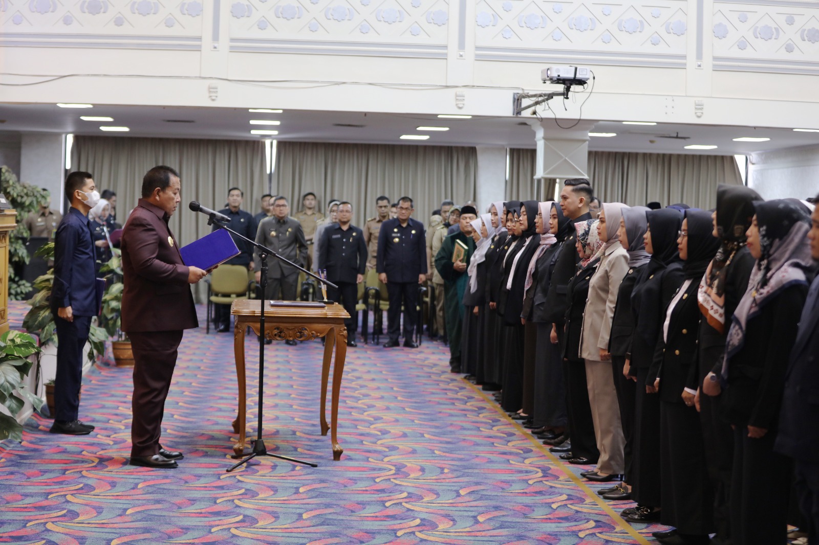 BANDARLAMPUNG —– Gubernur Lampung Arinal Djunaidi Melantik dan Mengambil Sumpah Jabatan 405 Pejabat Fungsional di lingkungan Pemerintah Provinsi Lampung, yang berlangsung di Lantai III Balai Keratun, Komplek Kantor Gubernur, Selasa (20/6/2023).