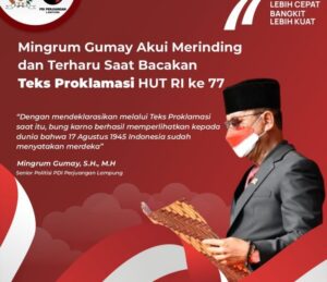 ” Dengan mendeklarasikan melalui Teks Proklamasi saat itu, bung karno berhasil memperlihatkan kepada dunia bahwa 17 Agustua 1945 Indonesia sudah menyatakan merdeka ” Ungkap Mingrum