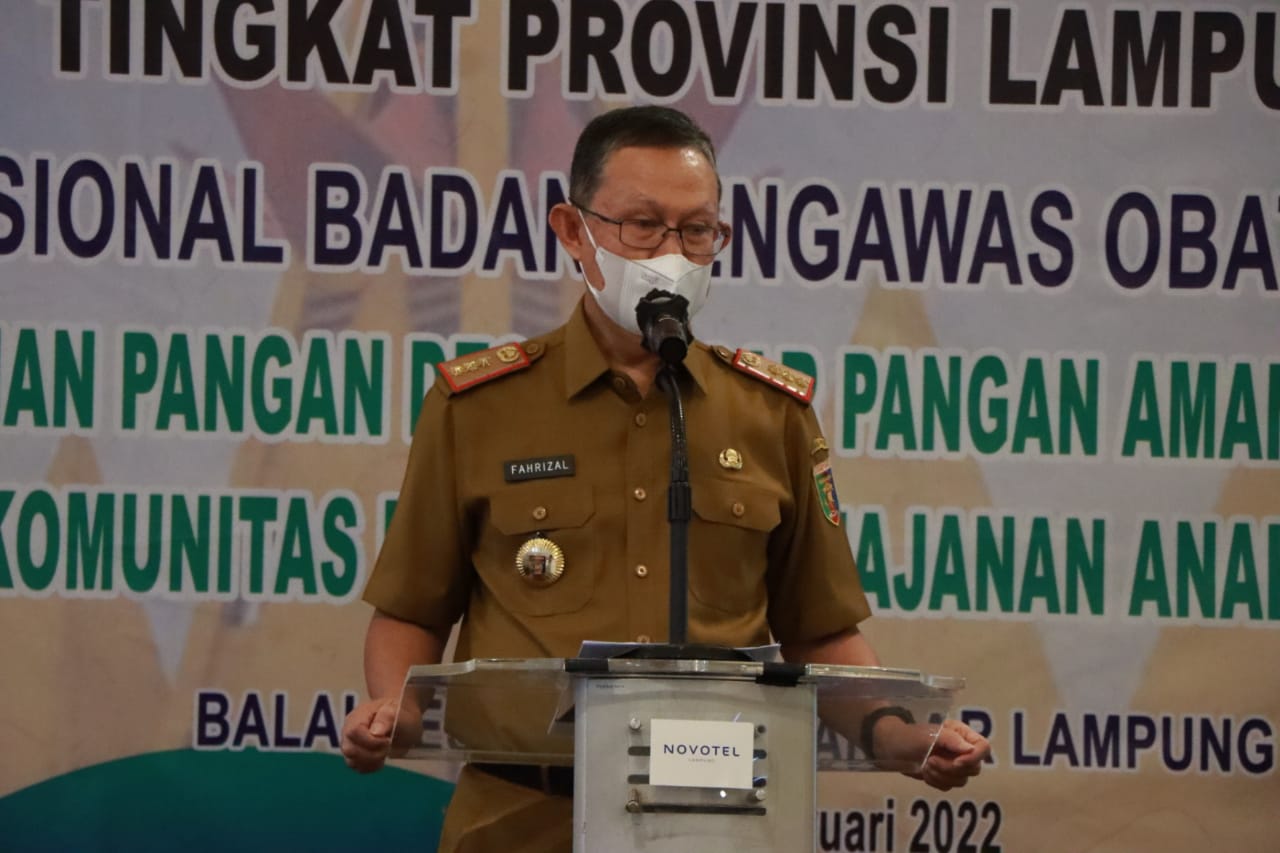 Bandar Lampung, — Sekretaris Daerah Provinsi Lampung, Fahrizal Darminto membuka kegiatan Forum Advokasi Komitmen Pemda dan Lintas Sektor Tingkat Provinsi Lampung Program Nasional Badan Pngawas Obat dan Makanan, bertempat di Hotel Novotel Bandar Lampung, Selasa (22/02/2022).