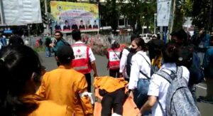 Sebanyak tujuh mahasiswa pingsan tersebut langsung ditangani oleh tim dari Palang Merah Indonesiam (PMI) Lampung.
